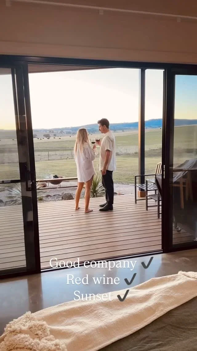 Each studio enjoys panoramic views of our serene Black Angus paddocks and the expansive farmland of Wiradjuri Country.