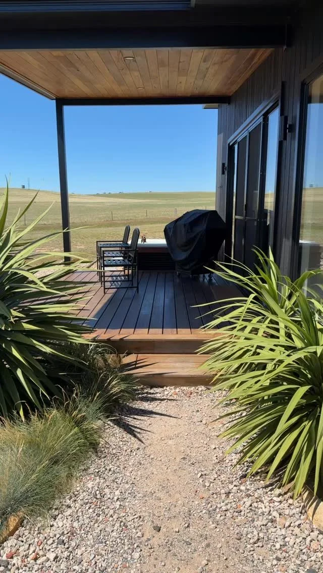 Designed to feel intimate without ever feeling enclosed, the studio balances comfort with quiet luxury. A plush king bed, carefully curated finishes and a generous bathroom with stone bath create a sense of retreat, while the connection to the land remains ever-present. From first light over the vines to golden afternoons watching the cattle and alpacas move through the paddocks, every element of the studio is intended to slow the pace and immerse guests in the beauty of country life.